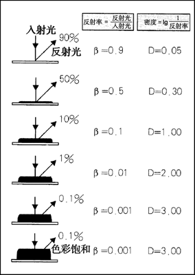 如果R表示墨層對光線的反射率,那么墨層愈厚,吸收的光能量愈多,反射率R愈大,密度Dv愈小,隨著墨層的增厚、密度值也增加。