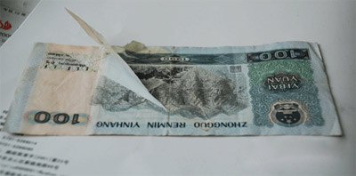 家住桃源縣漳江鎮某小區的艾女士,2001年經商時曾收到過90版的錯版百元人民幣一張,號碼為ZD39883409,艾女士在收款時沒怎么留意,第二天到農行儲蓄所存款的時候才發現這張錢有些異樣。在這張百元大鈔背面的山水圖案中有一塊區域顏色明顯不同于其它地方,好象是紙幣的背面重疊覆蓋著一個夾層,大小約占五分之一,一直從右下角斜伸到左上部。頭一回遇到這樣的怪事,艾女士以為自己又不小心收了張假鈔,于是就叫銀行的儲蓄員幫她鑒定一下,經過幾位工作人員仔細比對,確認這張錢的正面、水印和金屬線都完全正常,他們分析這張錢可能是印刷時出現了錯誤并漏檢出廠,主動提出給她調換,但艾女士出于好奇堅持要自己收藏。