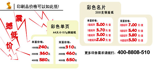 據(jù)悉:只要在CHINA PRINT 2009展前,致電“我要印”相關(guān)人員,或CHINA PRINT 2009主辦方,即可獲得超低名片特價(jià)服務(wù),具體價(jià)格如下: