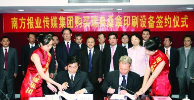 [編者按:南方報業傳媒集團昨天在穗與瑞典桑拿機械有限公司和維昌集團簽訂了購買印刷設備合同。]