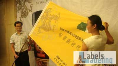 芬歐藍泰標簽授予溫州地區經銷商萬事貼公司“標簽新時代”龍旗