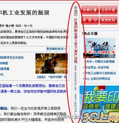 1) 資訊“正文”與“右側互動欄”中間“豎式文字及網址”充分體現“我要印”理念:打通印刷包裝工業上中下游產業鏈。