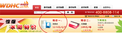 “我的耗材”網每周推出兩款特價商品,在8月10-14日,將推出“紅撕膜”和“洗網水”兩款特價商品。其中,“紅撕膜”以195 元/卷出售,低于市場價45元(240 元/卷)。