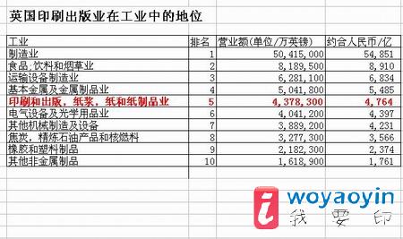 【我要印】訊:印刷,包裝是英國第五大制造業的一部分,下表顯示了與其他部門產值比較的結果。