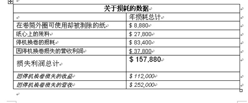 我們將所發現的損耗詳列于下, 每年損失高達15萬美元, 其中最顯著的3項損失可借助使用高效的不停機換卷設備來節約。