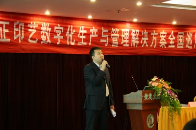 會議首先由山西省印刷協會會長楊尚裕致辭。楊會長提到,2007年10月方正電子發布了首款自主品牌的方正雕龍CTP,與國外CTP供應商在市場上展開了競爭,兩年來,方正雕龍取得了可喜的市場成績;今年,方正電子又推出省油墨、高保真、調頻加網、混合加網、數字資產管理等多項印藝數字化生產增值印刷技術,幫助印刷企業應用新的技術從而跳出同質化的競爭提供了豐富的解決方案,相信方正電子精彩的講座會讓各位更全面的了解當前印藝行業的發展狀況和最新技術,同時,本次活動舉辦也為山西的印刷業同行提供了交流的平臺,讓大家在互相溝通中了解和學習數字化生產與管理技術,提供新的思路。