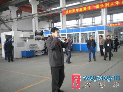 此次推廣演示會,上海亞華沒有進行過多的外觀布置,而是選擇向代表們展示了真實的生產(chǎn)現(xiàn)場。在亞華裝配車間,人群的到來似乎沒有影響到他們,工人們依舊盡然有序地進行生產(chǎn)。只有少數(shù)技術(shù)專家引導(dǎo)代表們參觀剛剛裝配完成的模切機和燙金機,代表們端詳著這些機器,有些代表甚至打開面板,探頭進去仔細(xì)觀看,態(tài)度相當(dāng)嚴(yán)謹(jǐn)認(rèn)真。