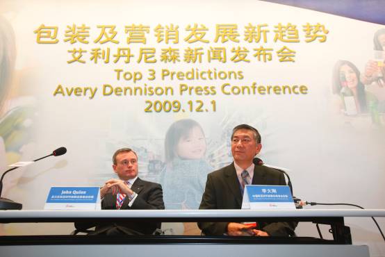 艾利丹尼森亞太區標簽材料部副總裁兼總經理莊浩昆先生(圖左)和中國標簽材料部副總裁兼總經理李大剛先生在艾利丹尼森于2009亞洲標簽展舉行的媒體發布會上對亞太區包裝和營銷趨勢做出三大預測。