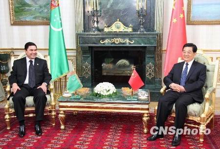 【CPP114】訊:正在土庫曼斯坦進行工作訪問的中國國家主席胡錦濤,十三日在阿什哈巴德與別爾德穆哈梅多夫總統舉行會談,規劃兩國未來的務實合作之路。中新社發張朔