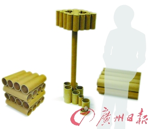 鋪天蓋地的廣告宣傳,讓許多PVC材料制作展板更換得非常頻繁。如何讓舊的材料回收后,變得更加有用。除了用于廣告噴畫或舊板遮擋外,把它們變成一套組合凳子,就是一種新的嘗試。由于PVC板具有防潮、防腐、防暴曬功能,相對紙質、木質,用途更廣也相當環保。單板承重力不夠,所以利用重重加疊形式,再用膠水黏合,里面裝訂加固,獨有的白色條紋讓它別具特色。