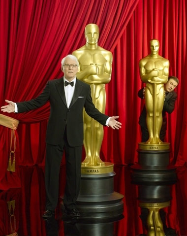 【CPP114】訊:距離3月7日的第82屆奧斯卡頒獎禮還有不到一個多月,兩位主持人阿歷克·鮑德溫(Alec Baldwin)與史蒂夫·馬丁(Steve Martin)已經嚴陣以待,準備迎接娛樂圈一年一度最隆重的頒獎盛典。雖然提名名單還沒有公布,但兩位明星已經開始履行主持人的義務,他們扎好領結,穿上正裝,為奧斯卡拍攝了一組宣傳海報。滿頭銀發的馬丁和身材魁偉的鮑德溫在海報中也充分發揮了平常的搞笑風格,一會兒像兩個頑皮的孩童,你推我搶地爭奪奧斯卡小金人,一會兒又面對鏡頭擺出一本正經的樣子,讓人忍俊不禁。