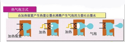 目前,采用熱發泡技術主要有佳能和惠普等公司采用,基本原理是通過加熱將墨滴噴出。