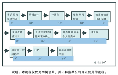 我們可以以一個中等復雜為文件為例,從最開始拿到客戶的文件到最終的輸出菲林,在印前部門花費的時間大約為2小時。