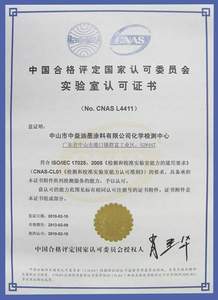 中益油墨化學檢測中心獲得國家CNAS認可