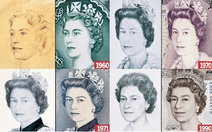 女王數次肖像畫與英鎊紙幣頭像的對比