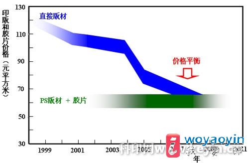 圖4 直接版材和PS版材+膠片的價格與時間的關(guān)系圖