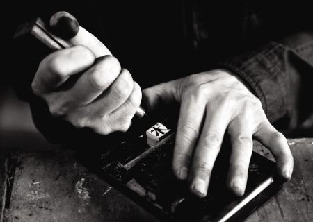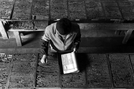 47歲的鄒建寧,是被發現的6個能成熟掌握這一技巧的傳承人之一。“我這手藝是祖上傳下來的,‘文革’期間,爺爺為了不讓人把這些傳家的東西毀掉,偷偷把這些字和圖版藏在谷倉頂上。”鄒建寧說,從小就對雕刻、印刷感興趣。他六七歲那年,父親過世了,初中畢業后,他和母親的生活一直很艱難。1980年,寧化七里圳一家姓章的開始請人重修家譜。為了生計,他就開始偷偷摸摸地學習活字印譜,當起了“譜師”。