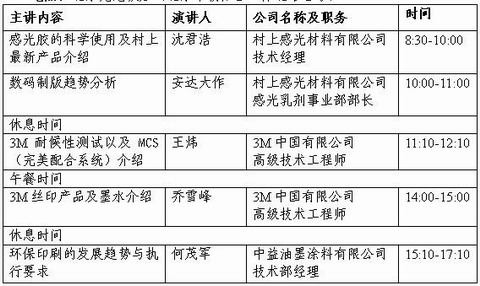 【CPP114】訊:為交流先進(jìn)網(wǎng)印特印材料與技術(shù)的最新信息,總結(jié)企業(yè)開發(fā)產(chǎn)品及其應(yīng)用的經(jīng)驗,共同探討網(wǎng)印特印新材料技術(shù)的發(fā)展方向,推動我國網(wǎng)印特印行業(yè)的發(fā)展,中國網(wǎng)印及制像協(xié)會(CSGIA)與村上感光材料(北京)有限公司、3M中國有限公司、中益油墨涂料有限公司合作舉辦“2010 ‘新產(chǎn)品•新應(yīng)用•新趨勢’技術(shù)交流會”。