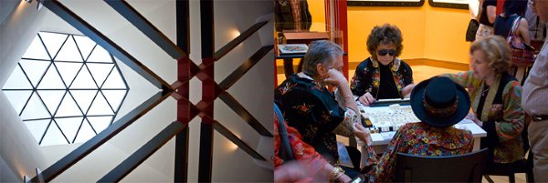-設計師憑借著麻將的標志性方塊形態,圖形符號和豐富的游戲方法等展開對這個主題的展示設計。從圖片來看,該展覽雖僅是在一個并不大的圓形空間里,包括具有40英尺高的六角形天窗的運用,但以現代的設計方式融合中國文化,其技巧及展示效果卻是極為豐富的。
