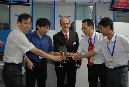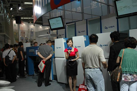 【CPP114】訊:6月2日,高寶展臺的燈光徐徐亮起,人與印刷醒目地懸掛在展臺上方,設計精美的展臺酷似一臺利必達印刷機,不斷吸引著觀眾駐足觀看。隨著利必達75四色印刷機的啟動,宣告了德國高寶正式亮相2010北京國際包裝博覽會。