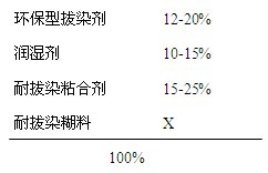 要配制環保型的拔染印花漿,經篩選和應用比較,采用二種或二種以上的還原劑進行復配,成為主拔劑和助拔劑,其還原劑體系即穩定又不含游離甲醛,能取得良好的拔染效果。