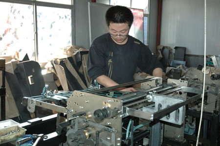不久前華田精工誕生了全世界第一臺(tái)配頁(yè)、印刷、單組打碼及雙組打碼一體機(jī),并已申請(qǐng)了專(zhuān)利,自2010年7月在上海廣印展正式向業(yè)界推出之后,該配頁(yè)機(jī)目前交付使用的已有5臺(tái),在剛落幕的首屆齊魯國(guó)際印刷包裝技術(shù)展覽會(huì)上,華田精工又收獲了兩個(gè)意向客戶(hù)。華田精工開(kāi)發(fā)配頁(yè)機(jī)已有6年歷史,市場(chǎng)覆蓋面正逐漸拓展中,在北京單配頁(yè)機(jī)就有至少11—12臺(tái),不久前剛出口了兩臺(tái)配頁(yè)、印刷、單組打碼及雙組打碼一體機(jī),分別銷(xiāo)往了利比亞和尼日利亞。