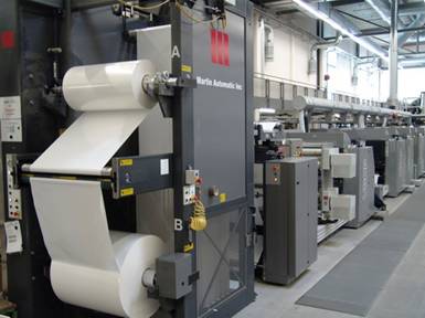 對(duì)于高產(chǎn)能的德蘭特—格貝爾印刷機(jī)而言,馬汀卓越的不停機(jī)方案變成非常重要,該印刷機(jī)配備了一部馬汀ECPF不停機(jī)放卷設(shè)備與一部馬汀RMAP收卷機(jī),使用幅寬850 mm、直徑為 1250 mm的卷筒材料。馬汀的不停機(jī)方案可以充分滿足該印刷機(jī)的需求。約瑟夫?qū)︸R汀設(shè)備贊不絕口,“自從我們購買馬汀設(shè)備之后,它們從來沒發(fā)生過故障,我們沒有因馬汀設(shè)備的問題而浪費(fèi)過寶貴的生產(chǎn)時(shí)間,一分鐘也沒有。我們對(duì)馬汀設(shè)備的穩(wěn)定性已經(jīng)習(xí)以為常了,幾乎忘記了它們的存在。”
