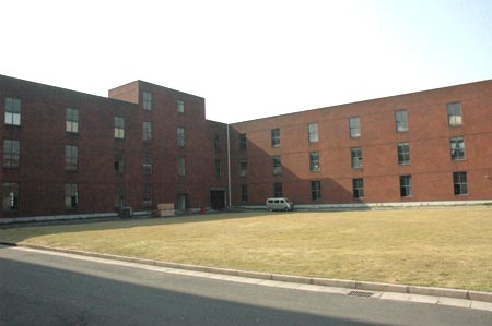 一片草地的四周,被矗立起的三層辦公及生產車間樓房圍攏著。樓房外墻統一是深褐紅色。似乎讓觀者難辯辦公樓、員工宿舍、車間。細察,外墻有白色透明玻璃窗的樓房顯是辦公樓;空調懸外的顯是員工宿舍。車間(含印刷車間、印刷后道車間等)三幢連成凹形,于辦公及宿舍樓對面。