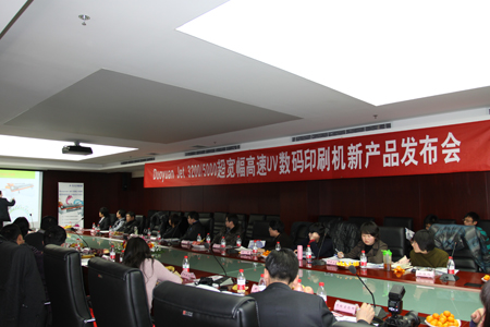 【CPP114】訊:2011年1月15日,多元印刷機(jī)械公司召開(kāi)新產(chǎn)品發(fā)布會(huì),發(fā)布其最新DuoyuanJet3200/5000系列超寬幅高速UV數(shù)碼印刷機(jī)。來(lái)自中國(guó)印刷及設(shè)備器材工業(yè)協(xié)會(huì)噴墨分會(huì)的相關(guān)領(lǐng)導(dǎo)、媒體及多元公司以色列方合作代表等三十余人參加了此次活動(dòng)。