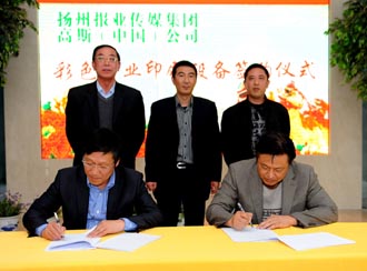 - 2011年4月21日下午,揚州報業傳媒集團與高斯圖文印刷系統(中國)有限公司在揚州日報報業大樓舉行了隆重的彩色商業印刷設備簽約儀式。參加儀式的有揚州報業傳媒集團黨委委員、副總經理史康寧先生和高斯(中國)副總經理勵崎先生等人員。