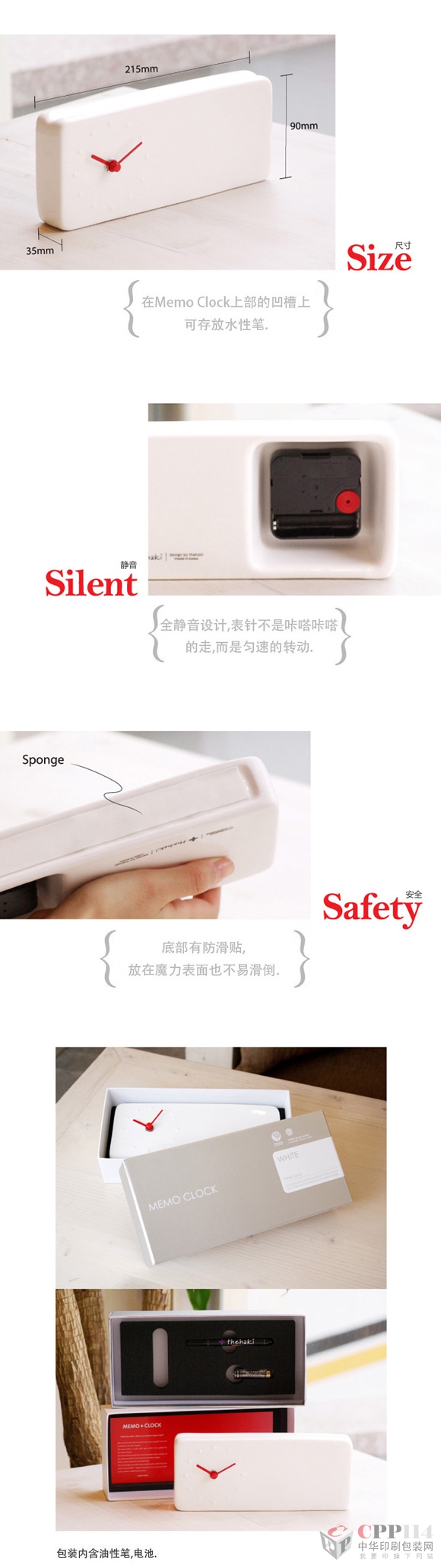陶瓷備忘鐘Memo Clock,韓國(guó)DESIGN ONE旗下品牌thehaki出品,獲得2009紅點(diǎn)設(shè)計(jì)(Reddot)和好設(shè)計(jì)(GoodDesign)獎(jiǎng)。