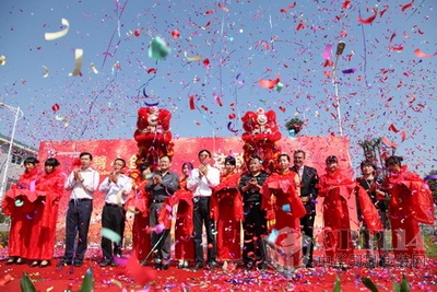 圖2:出席活動的嘉賓和領導為達美程公司的開業進行剪彩慶賀