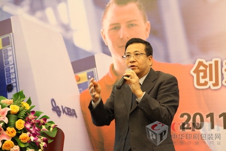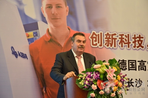 在大會的主題演講環(huán)節(jié),德國高寶公司的單張部市場總監(jiān)JuergenVeil先生重點向大家介紹了高寶最新研發(fā)的利必達105設備以及數(shù)字噴墨與膠印的聯(lián)機技術(shù)。全新利必達105此次完全采用了利必達106的技術(shù)平臺,從各個方面看都有大幅度的技術(shù)提升。叼牙系統(tǒng)無需調(diào)整就可實現(xiàn)薄厚紙的轉(zhuǎn)換,所有印刷機組利用全自動換版技術(shù)更換只需不到3分鐘,除此之外,橡皮布與墨輥還可同步清洗,上光裝置的換版時間只需短短的一分多鐘,這些技術(shù)的應用都大大節(jié)約了印刷準備時間。另一方面,獨立開發(fā)的干燥系統(tǒng)VARYDRYBLUE還可以節(jié)約50%多的能耗。.jpg)