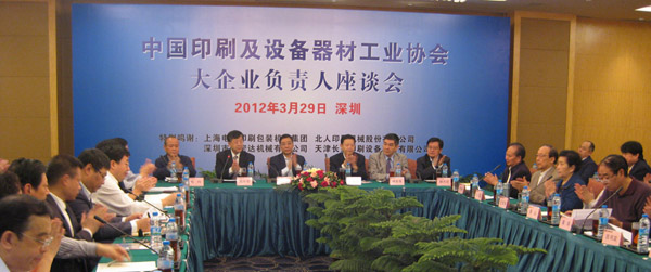 - 2012年3月29日,中國印刷機設備器材工業協會在深圳召開大企業負責人座談會,研討印刷行業發展戰略。來自全國印刷行業的重大裝備制造企業負責人、大印刷企業負責人和行業專家共60余人出席會議,會議由協會秘書長陸長安主持。