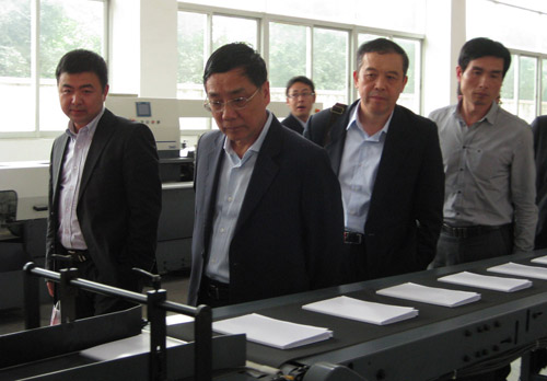 3月29日下午,中國印刷機設備器材工業協會理事長徐建國(左二)及大企業負責人座談會與會嘉賓到深圳市精密達機械有限公司參觀考察。