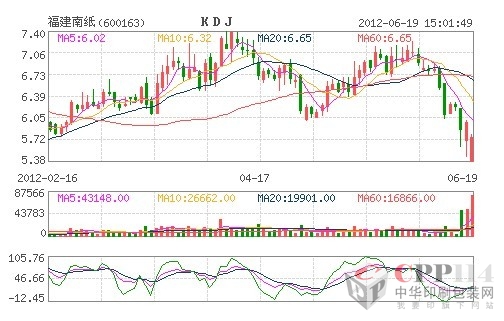 【CPP114】訊: 6月19日消息:周二早盤,造紙印刷板塊表現(xiàn)低迷,全線盡墨。截至9:50分,造紙印刷板塊下跌1.29%。福建南紙因大股東終止轉(zhuǎn)讓控股權(quán),"易主"告吹,今日復牌大幅下跌,現(xiàn)報5.43元,跌幅9.20%;合興包裝、勁嘉股份、上海綠新、萬順股份、青山紙業(yè)等跌幅逾1%。