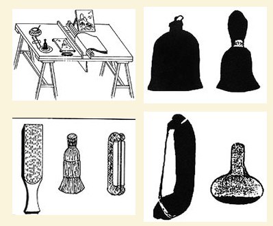 常用的工具 在印刷中常用的工具主要有:印刷臺案、印刷版固定夾、紙張固定夾子、各種規格的刷子。