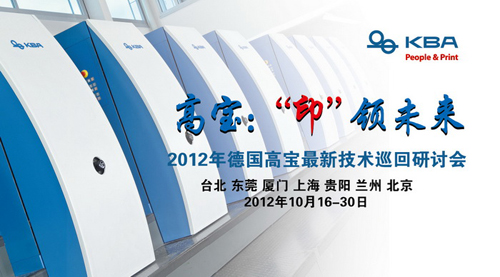 - 2012年10月,“第六屆德國高寶最新技術巡回研討會”將再次登陸中國,并在臺北、東莞、廈門、上海、貴陽、蘭州、北京七大城市,與大家共同分享其在德魯巴推出的新技術和新產品,繼續演繹高寶“印”領未來的精彩。