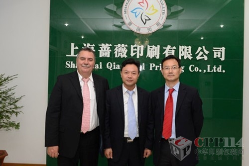 圖7:成功合作——上海薔薇印刷有限公司總經(jīng)理王輝北先生與德國高寶集團(tuán)單張部市場總監(jiān)Juergen Veil先生、德國高寶公司中國區(qū)單張銷售及市場部總經(jīng)理王聯(lián)彪先生在薔薇公司
