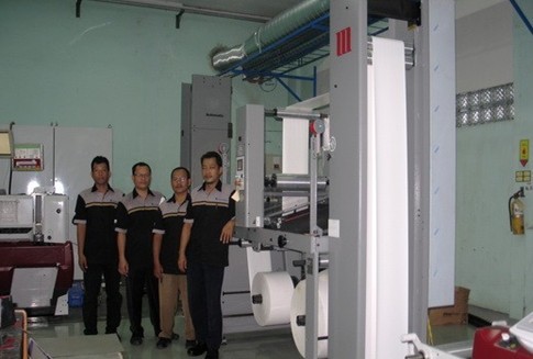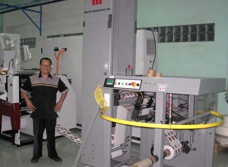 柔印部經理Nyoto Trisno先生對于柔版印刷機搭配了伺服驅動器的馬汀STR旋轉式自動收卷機之后的產能提升大為贊許。