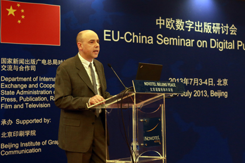 - 7月3-4日,由歐盟文教總司與國(guó)家新聞出版廣電總局共同主辦,北京印刷學(xué)院和歐盟世貿(mào)項(xiàng)目(二期)承辦的中歐數(shù)字出版研討會(huì)在北京和平賓館成功舉行。