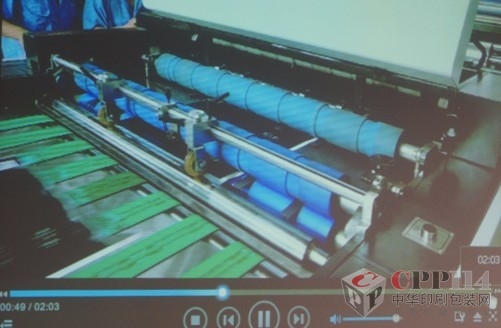 上圖:上海天岑現場播放熱刀分切運轉視頻