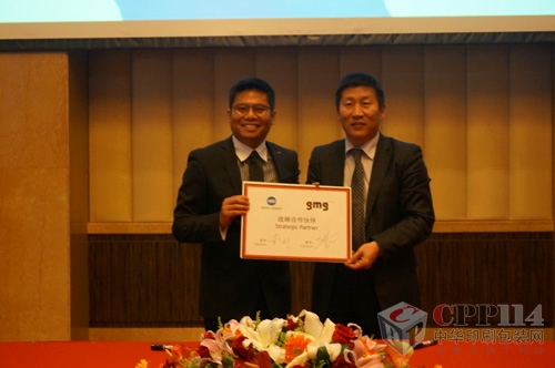 【CPP114】訊:2014年3月11日,及邁及(上海)貿(mào)易有限公司(簡稱GMG)在上海喜來登由由大酒店召開新聞發(fā)布會暨CoZone新品發(fā)布會,活動取得圓滿成功。新聞發(fā)布會上,GMG大中華區(qū)執(zhí)行總裁邱炳良先生分別與柯尼卡美能達辦公系統(tǒng)(中國)有限公司數(shù)字印刷營業(yè)部部長李剛先生、佳能(中國)有限公司副總裁森本一成先生簽署合作協(xié)議,雙方就GMG最新色彩管理系統(tǒng)等數(shù)碼軟件在激光打印機、數(shù)碼印刷機上的應用展開了合作。