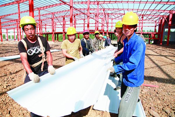 - :“今天北側(cè)的彩鋼板要全部安裝完畢,干活的時(shí)候把安全帶都系牢,注意安全;土建那邊別太著急,這周之前完成就行,大家把活干仔細(xì)點(diǎn)……估計(jì)整個(gè)基礎(chǔ)建設(shè)10月底前能結(jié)束。”8月11日,在遼寧萬(wàn)隆彩印包裝有限公司的施工現(xiàn)場(chǎng),公司負(fù)責(zé)人陳學(xué)松一邊有條不紊地安排各項(xiàng)工作,一邊向記者介紹工期進(jìn)度。