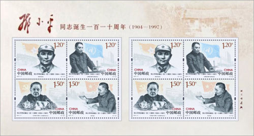 - 為了紀念和追思這樣一位不凡的老人,今年8月22日,時逢鄧小平同志誕生一百一十周年之際,中國郵政集團公司將發行《鄧小平同志誕生一百一十周年》紀念郵票1套4枚。基于這套郵票的題材及其影響力,郵票發行部高山總經理特別強調,這套郵票的選題、設計和印刷一定要組織精兵強將,精心設計、精致印刷,做出精品。