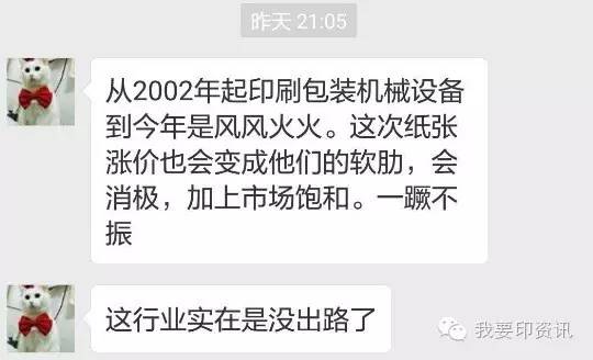 江門(mén)某數(shù)碼印刷公司負(fù)責(zé)人無(wú)奈地向小編表示“要材料沒(méi)材料,拿現(xiàn)金都買不到材料,從業(yè)那么久了還是第一次”。浙江嘉興某包裝企業(yè)也向小編表示:“現(xiàn)在很被動(dòng),不敢接單了。”