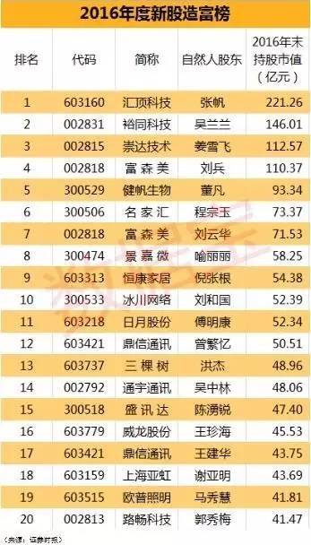 根據裕同披露的招股說明書,公司大股東王華君、吳蘭蘭夫婦分別持股12.1250%、58.6108%,加起來超過70%,屬于絕對的實際控制人。而裕同科技副董事長吳蘭蘭憑借持有的2.11億股,持股市值140億元,成功躋身《2016年度A股財富榜》前十。