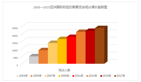 圖2:2003年—2015年亞洲國際標簽印刷展覽會(Labelexpo Asia)觀眾增長趨勢圖(注:2017年為預測):