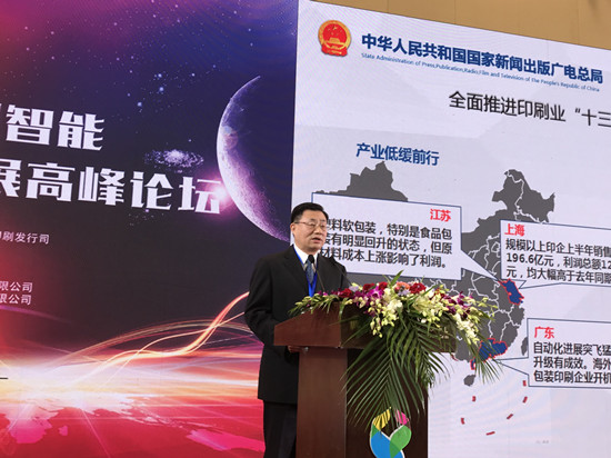 發行司司長劉曉凱發表“學習貫徹十九大 推動印刷業智能化發展”的主旨演講