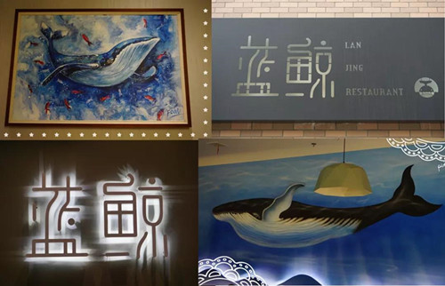 步入藍鯨餐廳,被店里的藍鯨墻繪和各類裝飾畫所吸引,浪漫簡約的風(fēng)格讓人如置身安靜神秘的海底世界。